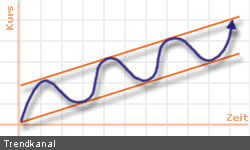 Kurse liegen innerhalb einer bestimmten Bandbreite. Diese Bandbreite wird durch die Unterstützungslinie und die Widerstandlinie festegelegt. Bei der Unterstützungslinie verbindet man die Tiefpunkte miteinander. Bei der Widerstandslinie verbindet man entsprechend die Höchtkurse. Verlaufen die Unterst...